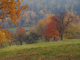 To, co na Wołtuszowej najpiękniejsze, to bez wątpienia widoki z rozległej polany, rozciągającej się nad nieistniejącą dziś wsią. A dzień był absolutnie fenomenalny jeśli chodzi o fotografowanie - lekka mgiełka podkreślała cudowne jesienne barwy: czysty impresjonizm w obiektywie :)